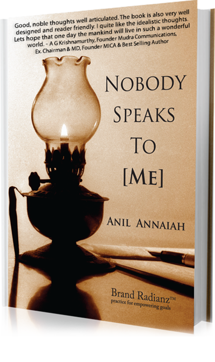 A small book packed with some powerful punches that leave a lot of food for thought! Aptly titled, Anil Annaiah’s book, ‘Nobody Speaks To Me’ has personal relevance to me since I work in the developmental sector. In my experience it is very difficult to get a listening from the mainstream community. I often wonder why the issues of human suffering that touch the very core of our lives are to be addressed by the non-governmental organizations only. It might come as a surprise that there are more than three and a half million non-governmental organizations operating in the country at an approximate of one for every four hundred Indians. Such a large number and we hardly see them in the mainstream media. The author has outlined a beautiful concept ‘Brand Radianz’ so simply and effectively with clear ideas for a win-win situation. His deep analysis on the social fabric that exists today and the need to sensitize the younger generation to bring about real changes and help them identify themselves with the larger social institutions are very pertinent.